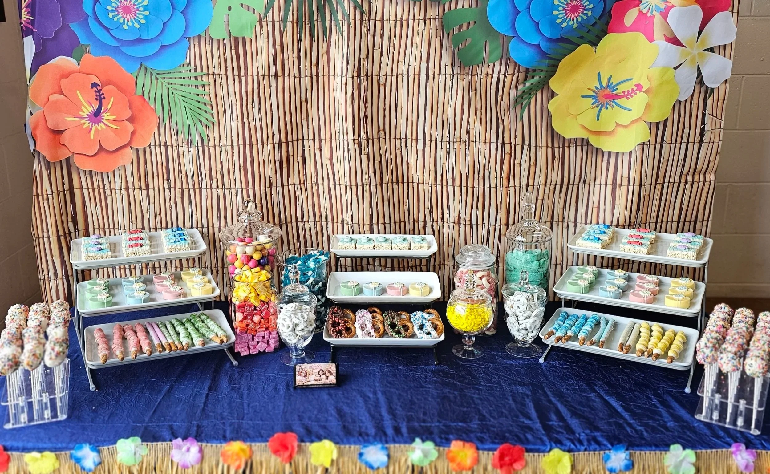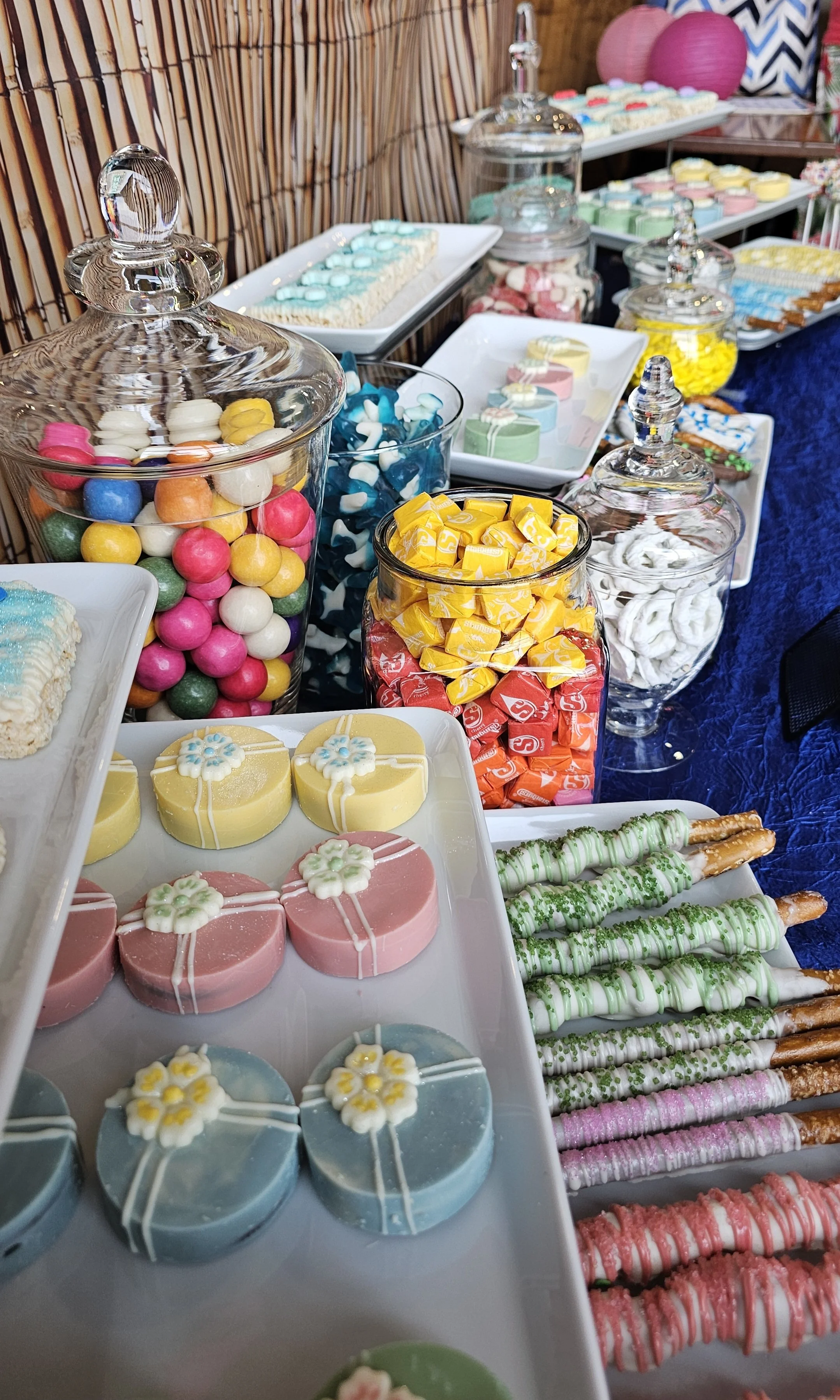 We have 4 table options available to accommodate your event needs. Choose the table that best suits your event and let the fun begin with a delightful variety of candies and dipped confections that are sure to bring a smile to your face. Whether you're planning a corporate event, wedding, birthday, or sharing with loved ones at a baby shower, our friendly team is here to help you create the perfect Candy Buffet for any occasion.